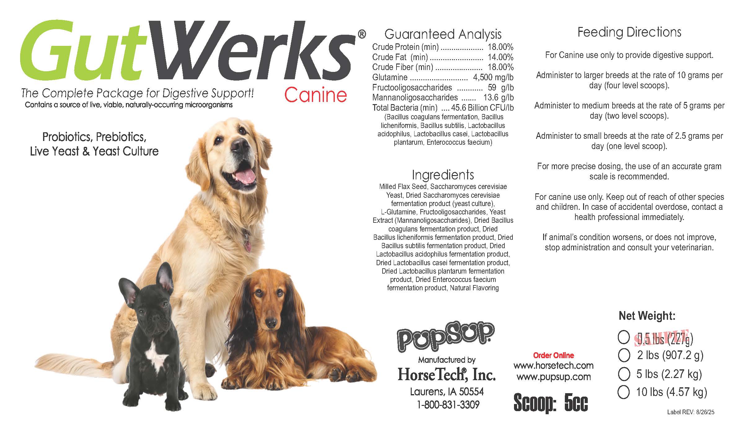 HorseTech/PupSup is committed to the highest standards of quality and efficacy. Each of our key ingredients is carefully selected. The probiotics are selected for stability and viability. Proven prebiotics serve as food for these beneficial bacteria, ensuring long-term gut balance/function while premium milled flaxseed serves as the nutritious base. By investing in your dog’s gut health with GutWerks Canine, you are not only addressing digestive concerns but also fostering long-term health and wellness for your beloved companions.