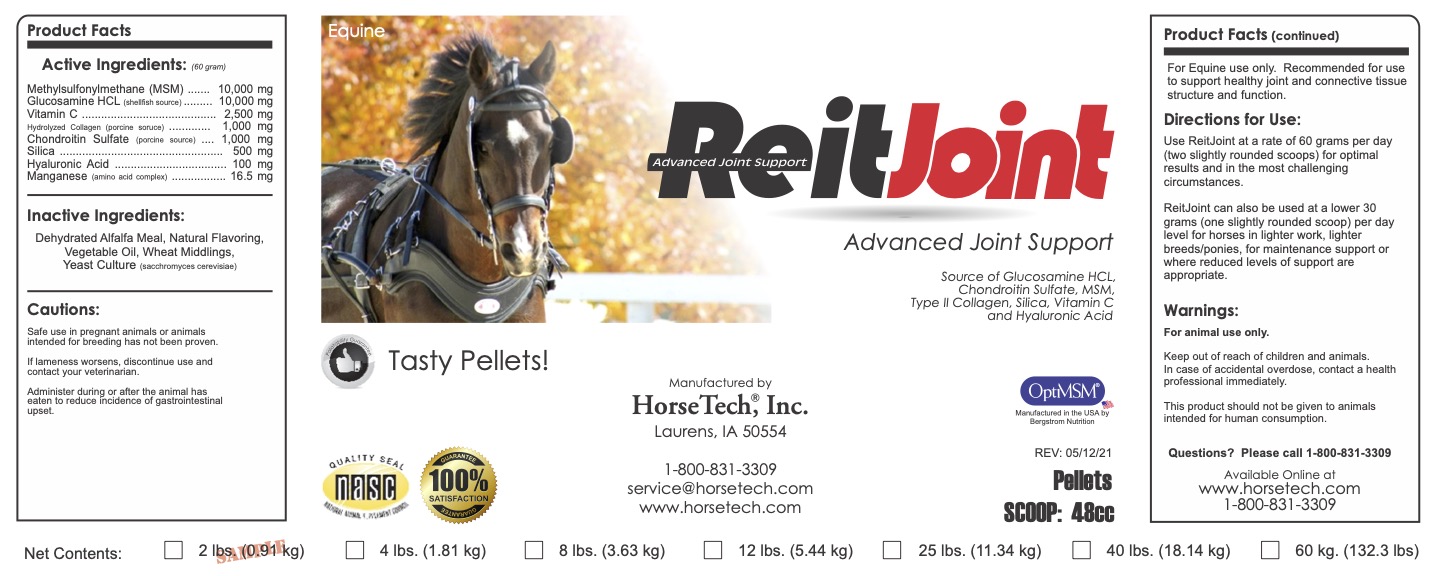 HorseTech's ReitJoint supplement offers advanced joint/ligament & tendon support in a tasty pellet! This potent, versatile and affordable product offers uncompromised performance at a price that really works! ReitJoint offers substantial levels of Glucosamine, Chondroitin, MSM, Hyaluronic Acid, Hydrolyzed Collagen, Silica, and Vitamin C. Where possible, HorseTech has selected ingredients Made in the USA-- including OptiMSM, Hydrolyzed Collagen, Chondroitin, Hyaluronic Acid, Manganese Amino Acid Complex, and more.